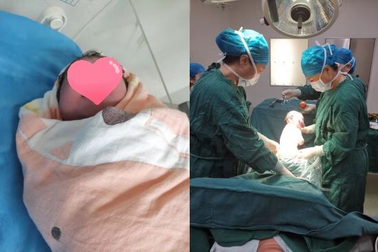 7月18日早上,于女士突感腹痛,被家人送往深圳万丰医院产科。张秋菊医生接诊病人,发现血性羊水,心跳107次/分,BP:110/68mmHg,背部可见长约42cm不规则纵行手术疤痕。有妊娠合并症,高危因素较多,且有先兆临产的孕妇,凭借丰富的经验,张医生迅速做出了剖宫产术的方案。但是由于孕妇14岁时因为脊柱侧弯做了矫正术,钢板未取出,无法做普通的硬膜外麻醉,给手术带来难度。