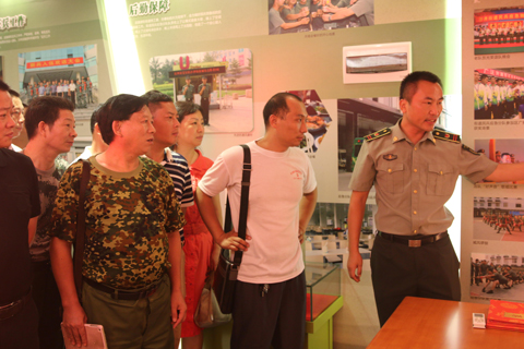 随后,慰问团队在沙井民兵应急连连长、指导员的邀请下参观了沙井民兵应急连历史荣誉馆、作战室、图书陈列室,营房、连队信息化建设的进程等,并观看了沙井民兵应急连的应急实战演练视频。