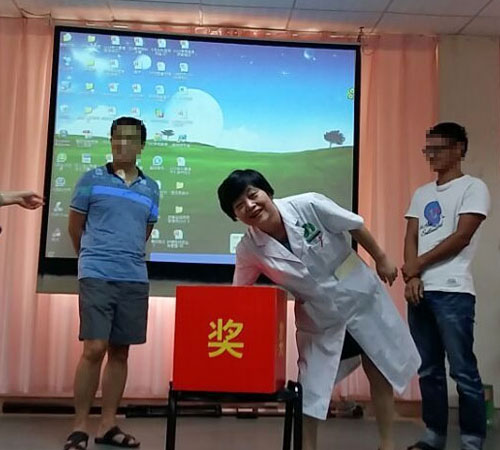 此次“幸孕抽奖”活动本着公平、公开、公正的原则进行,在抽奖现场邀请了3名孕妇家属上台近距离监督抽奖,由产科徐艳主任随机抽出“幸孕大奖”,幸孕获得者上台发表了热情洋溢的获奖感言。