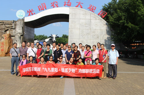 重阳佳节倍思亲。10月21日,时值重阳佳节,深圳万丰医院为了让老年员工感受到家庭般的温暖,表达医院对他们的关心关爱,丰富他们的文化生活,同时感谢他们为医院的发展建设献智献力、发挥余热,深圳万丰医院组织医院60岁以上的老人,在光明农场开展了“九九重阳,情系夕阳”光明农场大观园游园联谊活动。共40余名老人参加了活动。