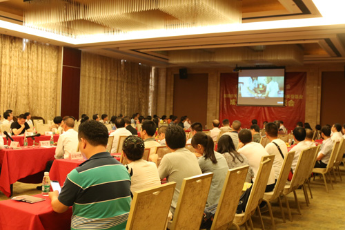 座谈会上与会人员观看深圳万丰医院《共筑关爱之路,共建和谐社会》视频