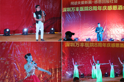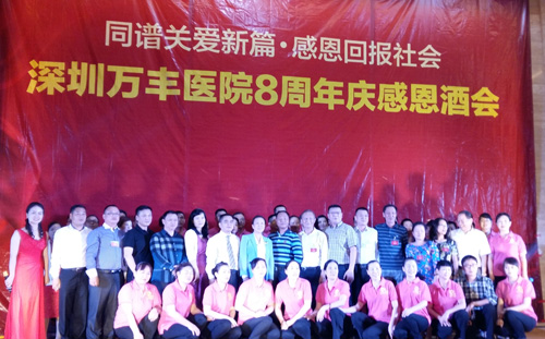 2015年11月11日,深圳市关爱行动公益基金会·万丰健康关爱基金成立4周年,深圳万丰医院建院8周年。当天,深圳万丰医院在西岸花园酒店召开了万丰健康关爱基金成立4周年专题座谈会及深圳万丰医院8周年庆感恩酒会。深圳市关爱行动公益基金会秘书长彭伊娜,深圳市关爱办副主任王轲真,深圳晚报总经理石岩松,沙井街道“两新”组织党委专职副书记吴玉芹,深圳万丰医院院领导、嘉宾出席了本次活动。参加活动的还有相关社会组织负责人以及部分爱心企业负责人共300余人。