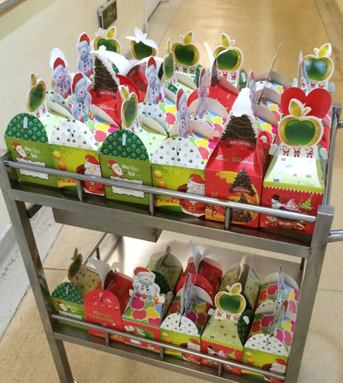 12月24日是圣诞节平安夜,为了让住院患者感受到圣诞节的欢乐与热闹,活跃病房气氛,深圳万丰医院为住院病人和家属送上苹果礼盒,也送去医院对患者平安和健康的祝愿。