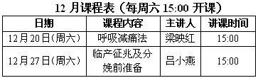 深圳万丰医院孕妈咪课堂12月课程表