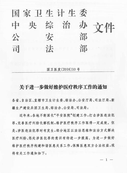关于进一步做好维护医疗秩序工作的通知