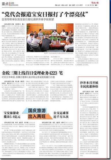 2016年10月10日宝安日报在第A06板块对沙井街道、市关爱行动公益基金会·万丰健康关爱基金主办的“健康梦·中国梦——沙井首届全民健康体检月”活动以“沙井本月开展全民优惠体检”为标题进行报道了报道。