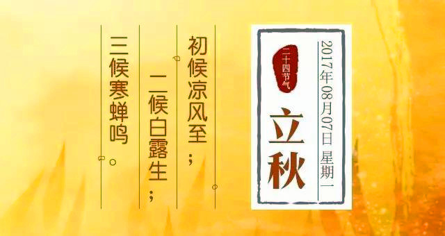 二十四节气之第十三个节气,更是干支历未月的结束以及申月的起始;时间在农历每年七月初一前后(公里8月7-9日之间)。“秋”就是指暑去凉来,意味着秋天的开始。