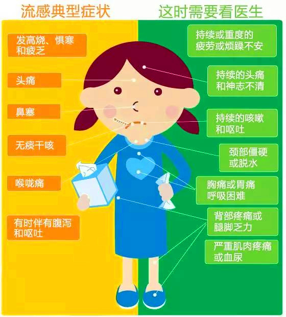 最常见的流感起病突然‘畏寒、寒战,高热,体温可达39-41度,伴头痛、身肌肉关节酸痛、极度乏力、食欲减退等全身症状,常伴有咽喉痛、干咳,可有鼻塞、流涕等。