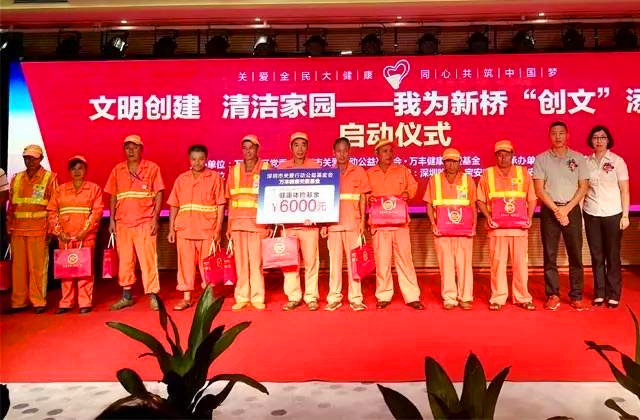 肖副主任表示,环卫工人为新桥的整洁卫生辛勤劳动,在“创文”活动中作出了突出贡献,我们针对他们的特殊职业制定体检套餐,并建立健康档案,体检合格的工人将颁发健康证;万丰健康关爱基金希望通过这种方式来表达对他们的敬意,呼吁更多的人关心和尊重环卫工人!