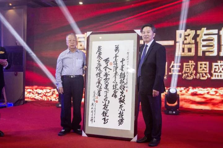 ▲广东优生优育协会会长冯鎏祥赠送墨宝