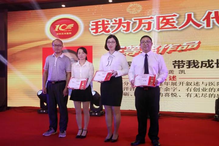风雨十年路,感恩十年情。深圳万丰医院每天都在发生感人的事迹。医院面向全体同仁及社会各界人士,开展了“健康杯”征文大赛和“我为万医人代言”征文大赛,大赛获奖者们在舞台上接受了表彰和奖励。