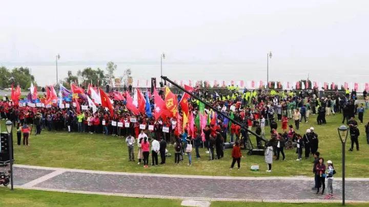 ▲爱心如潮,彩旗招展的深圳湾