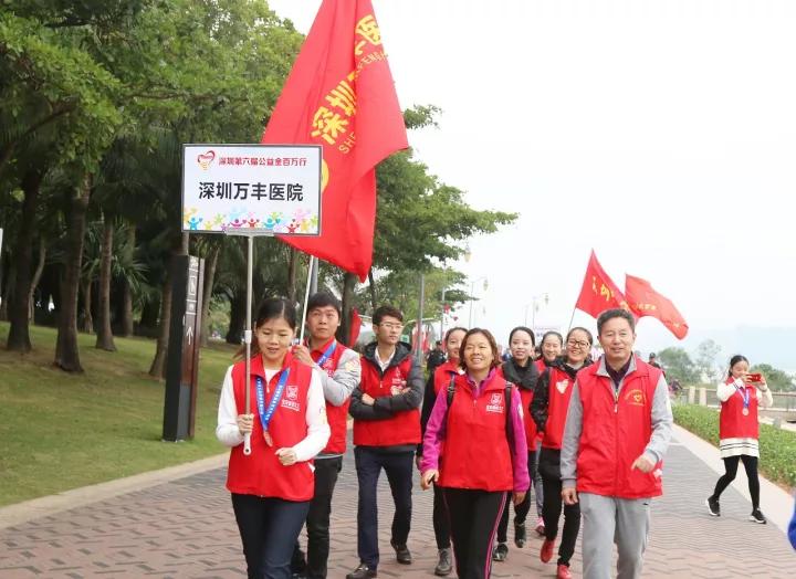 11月25日,由深圳特区报社联合深圳市关爱行动组委会办公室、深圳市关爱行动公益基金会共同发起的“公益金百万行”再次起步。深圳万丰医院20多名义工与各个企业、社团、市民、学生组成的队伍为爱行走在深圳湾畔,这是深圳万丰医院自2012年以来连续6年参与“公益金百万行”。