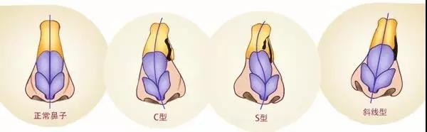 注:歪斜的鼻中隔与正常的鼻中隔