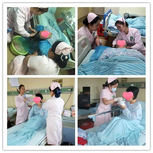 ▲妇科护士们为王女士洗头、吹头、喂饭、护理等