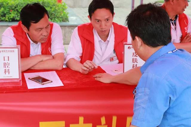 昨日下午4点30分,万丰社区党群服务中心组织深圳万丰医院义工服务队走进万丰社区98工业园,为该工业园近500名工人开展公益义诊活动。深圳万丰医院义工服务队内科、中医科、五官科、皮肤科等科室的7名专家现场为工人提供测量血压、身体检查、解答疾病困惑等的免费服务。