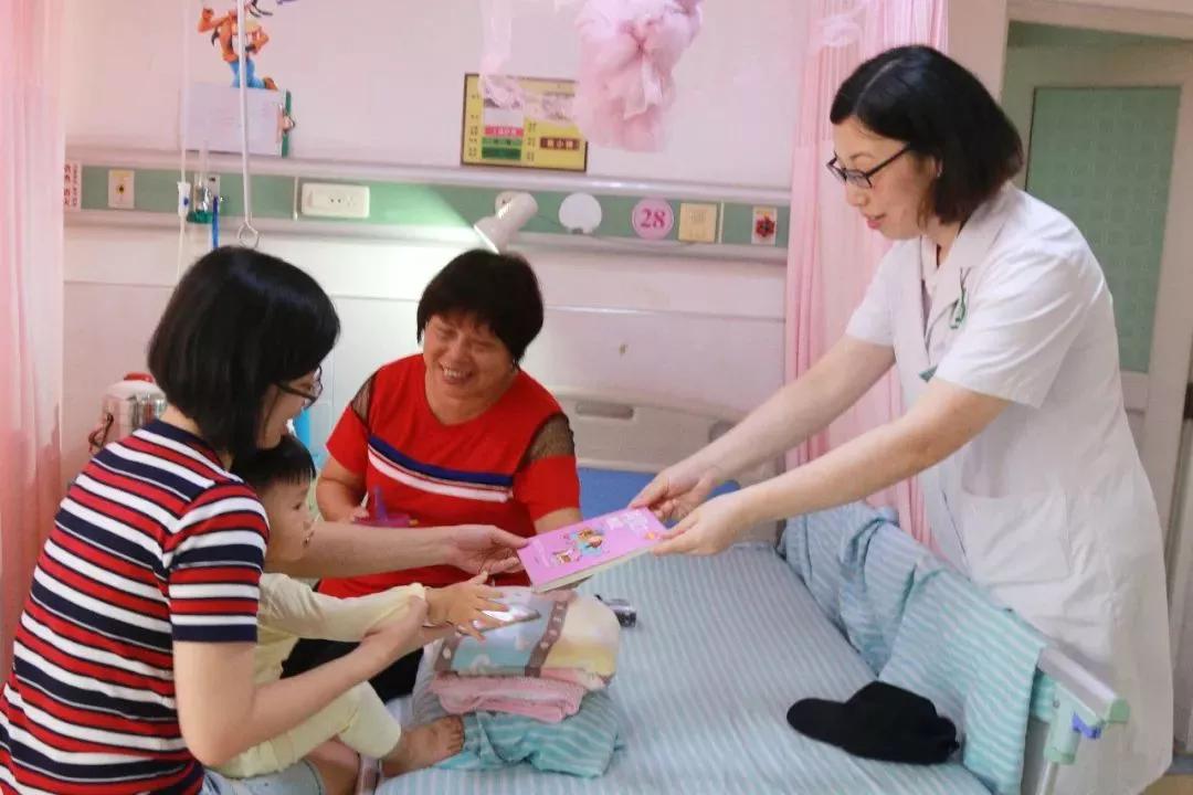 ▲温馨送图书,住院儿童也要过“六一”