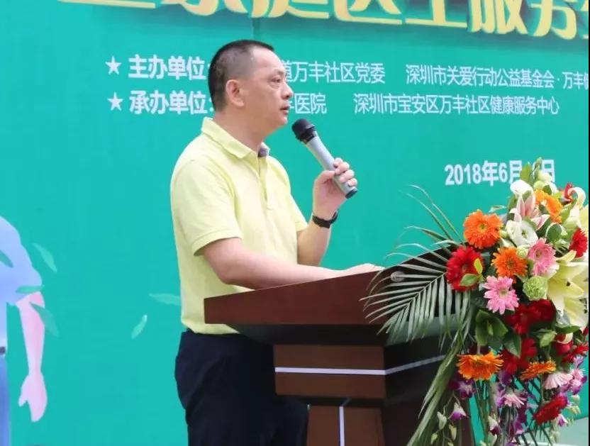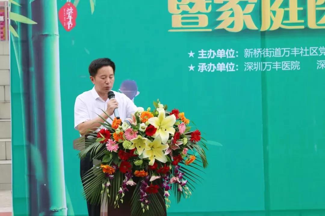 新桥街道万丰社区党委书记王少雄,代表社区党委向现场居民致以节日的问候,他在致辞中提到,深圳万丰医院建院十年来,各项事业“从无到有,从有到精”,为沙井、新桥市民的健康做出了一定的贡献,始终坚持走关爱之路、公益之路,帮助广大患者重获健康、守卫生命。在今天的活动中,开展利于居民的家庭医生签订活动。希望深圳万丰医院不辱使命,为了人民健康,再接再厉。