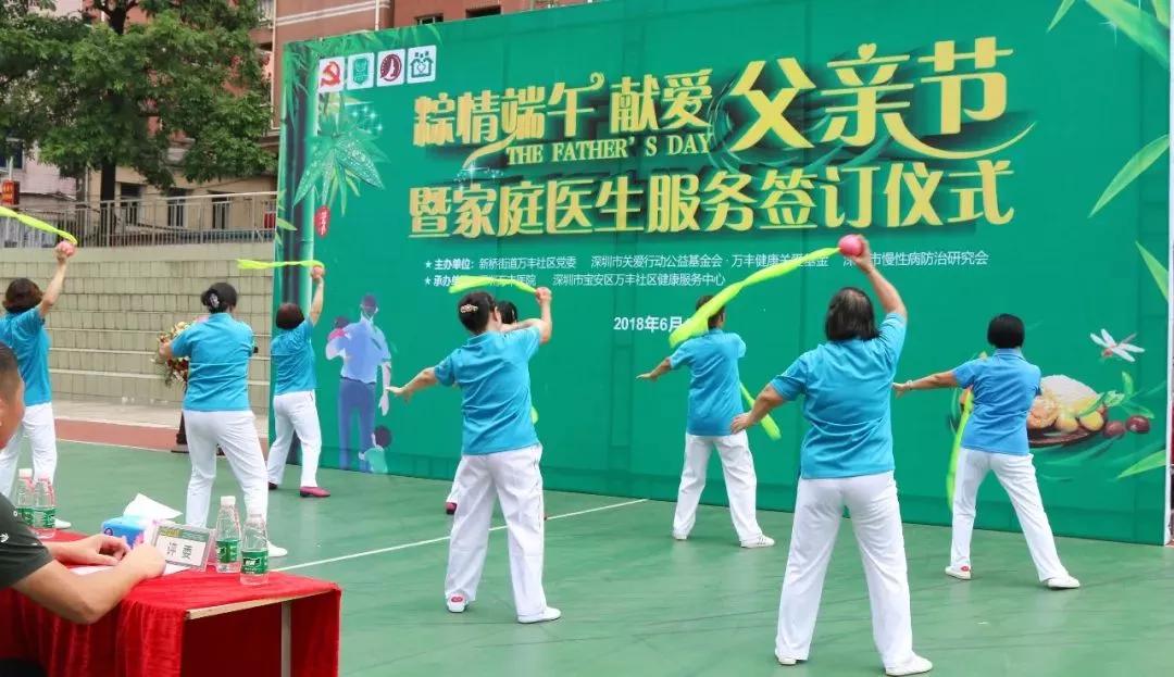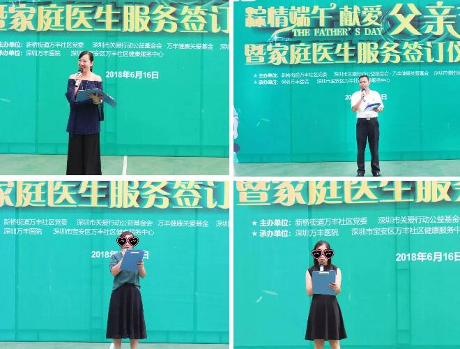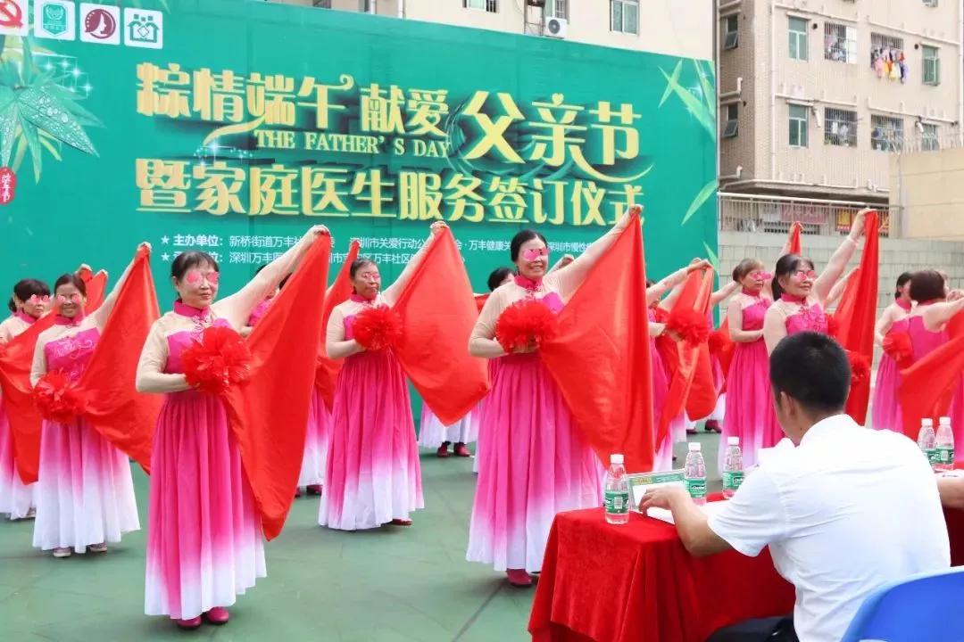 16日下午,火辣辣的太阳炙烤着大地,新桥街道万丰社区党委携手深圳万丰医院在万丰广场顺利开展“粽情端午·献爱父亲节暨家庭医生服务签订仪式”活动。