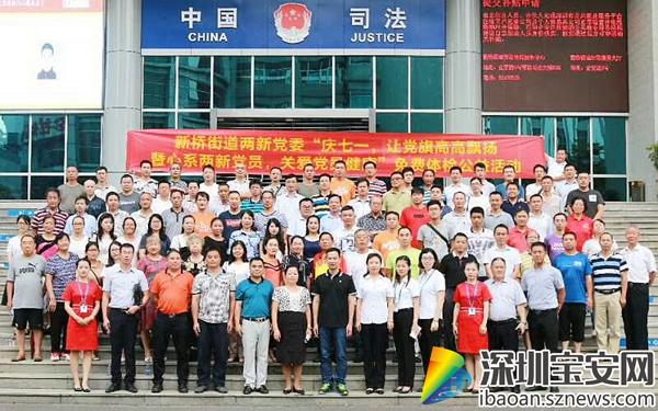 7月8日下午,宝安区新桥街道“两新”党委举行“庆七一,让党旗飘扬暨两新党员,关爱党员健康”免费体检公益启动仪式,重温入党誓词、唱响红歌、捐赠体检公益基金,新桥街道“两新”党组织近200名党员参加了此次活动。深圳宝安网以[党旗映新桥 “七一”建党节200名党员收到健康“大礼包”]为题进行了报道。