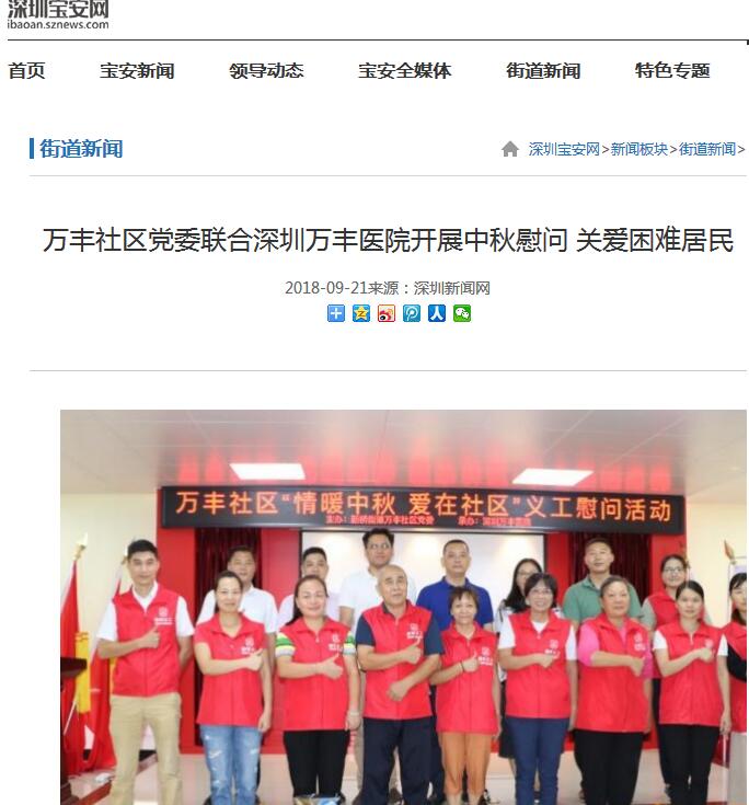 点击[万丰社区党委联合深圳万丰医院开展中秋慰问 关爱困难居民]了解深圳宝安网报道详情