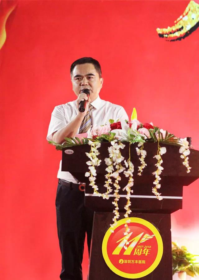 他强调:人才、技术、设备是医院发展的基础,文化是引领或促进医院可持续发展的动力,是行业竞争中不可复制的核心产品。所以,在深圳万丰医院建院11周年之际,推出一系列文化活动。未来要以人才塑造为根,以文化积淀为魂,用文化滋养万医人的生命,用文化润泽万医人的思想,用文化温暖患者的心灵,用文化推动医院又好又快地发展。以11周年院庆为起点,到2020年,建设形成万丰医院自己的文化特色。