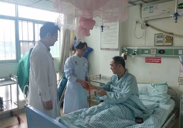 11月22日至27日,陈医生住在深圳万丰医院外科住院部。作为一名普通“病号”,他接受了外科护士的专业护理与照顾,慢慢恢复健康。期间,外科主任兼他的主刀医生喻晓,管床医生薛国详和外科护士长罗宇灿来到他的病床前探望他,并代表科室给予了慰问金。