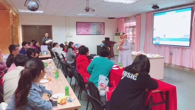 ▲莉姐给准爸妈们讲授新生儿护理技能