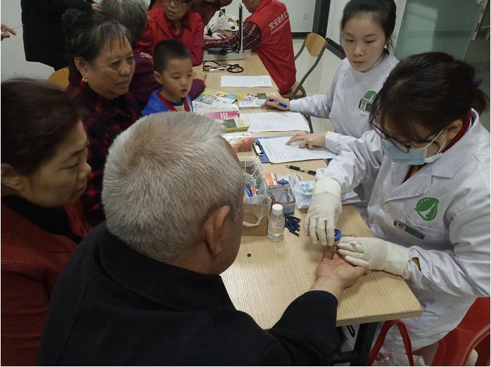 Δ 现场免费为社区居民检查血糖