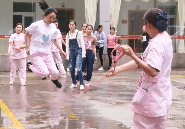 护士平常总是一袭飘然白衣,穿梭于病房,奋战于救死扶伤的临床一线,但你可知道她们生活中的另一面?也是青春阳光,富有活力的。护士节前夕,体现个人和团队精神风貌的跳绳比赛,如火如荼的开展。赶快一睹她们的风姿吧。