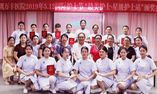 获评2019年深圳万丰医院“最美护士”分别为产科窦金平、产房祝巧玲、手术室周晶、内科李洁、儿科张文娟、妇科彭秋红、骨科樊美芳、疗区陈雪英、外科陈瑶、口腔科吴武慧、急诊科邹碧钊;最美护士长:外科罗宇灿;星级护士站:产科病区。院领导对以上优秀个人和团队给予奖励并颁发证书。最后,由手术室周晶作为“最美护士”代表上台发表讲话并表达不忘初心,再接再厉为病患做好服务的决心。