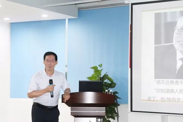 在课程开始之前,首先由深圳万丰医院总经理茅建辉致辞,茅总道,第一期的干部培训反映不错,各个科室也积极参与到医院文化创建中来,今天我们举行第二期干部培训,非常荣幸再次邀请到了深圳市医院协会医院文化分会会长、北京大学深圳医院党委书记王涛教授前来授课。茅总同时还阐述了医院管理的核心,从加强医院管理、规划职业人生的角度出发,表达了创建人文医院的决心。